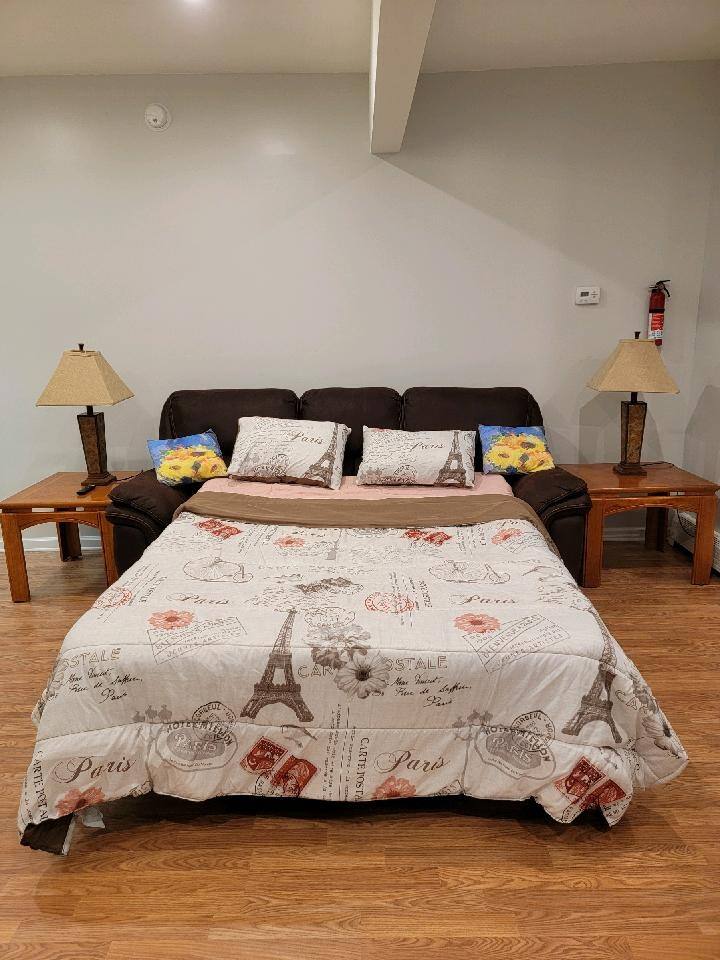 This space is an entire two bedroom apartment, that is furnished with standard amenities. It is a lower unit, with a unit above and in front of it. As such there could be some noise that would be expected with adjacent units.